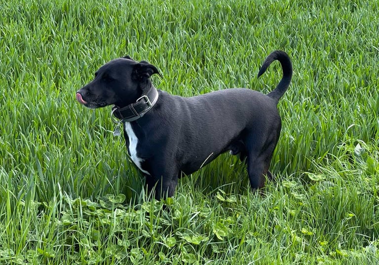 Ein kleiner verschmuster Pinscher gefangen im Körper einer kniehohen und knapp 30kg schweren Promenadenmischung.